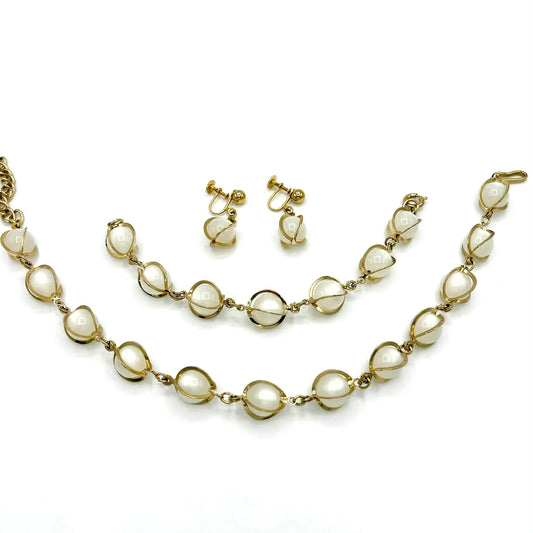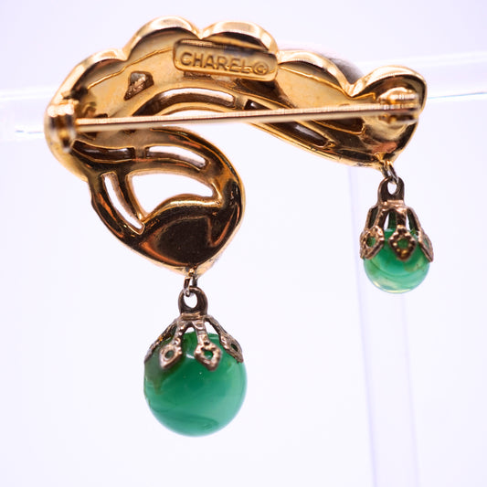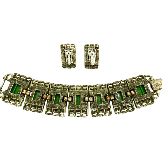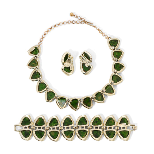 Vintage Charel Green Marble Bakelite and Metal Parure