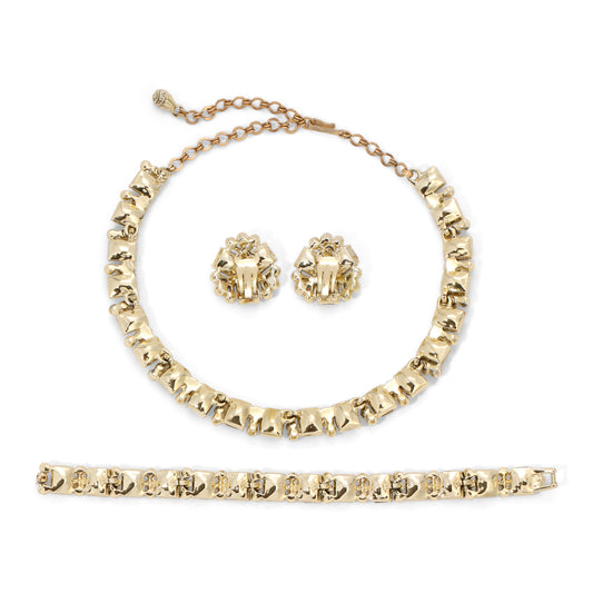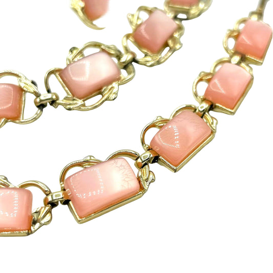 Vintage Bergere Gold Tone Wrapped Pink Quartz Clip-on Earrings