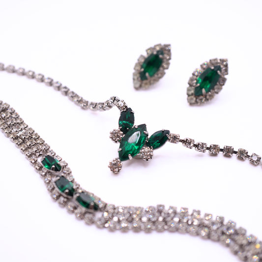 Vintage Eisenberg Ice Emerald-Color and Rhinestone Full Parure