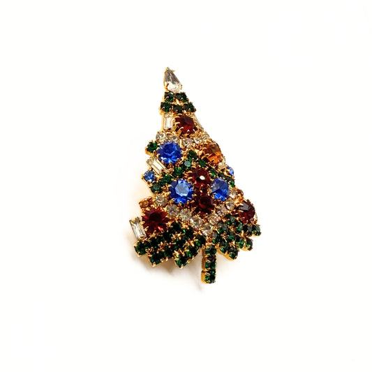 Vintage Eisenberg Ice Multicolor Rhinestone Christmas Tree Brooch