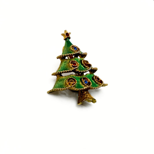 Vintage JJ Green Enamel Christmas Tree Brooch