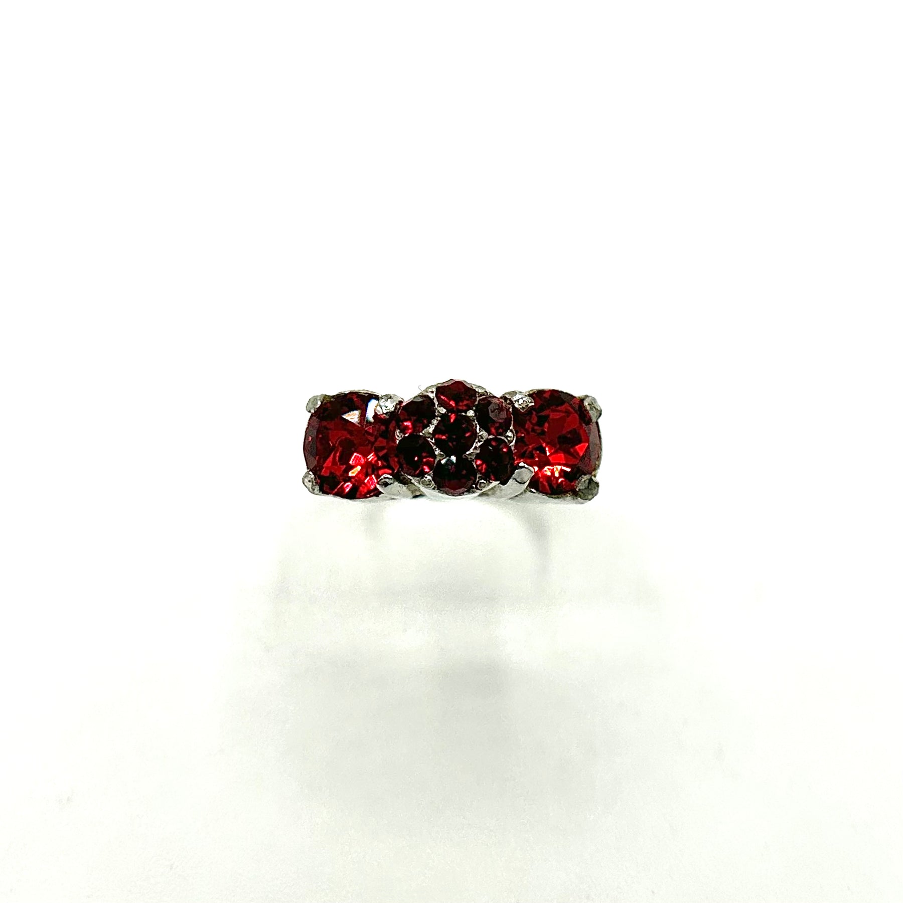 Beautiful signed EISENBERG ICE US PAT 3226208 vintage ring. The adjustable ring is original Eisenberg, the rhinestones have been replaced with seam ruby rhinestones.