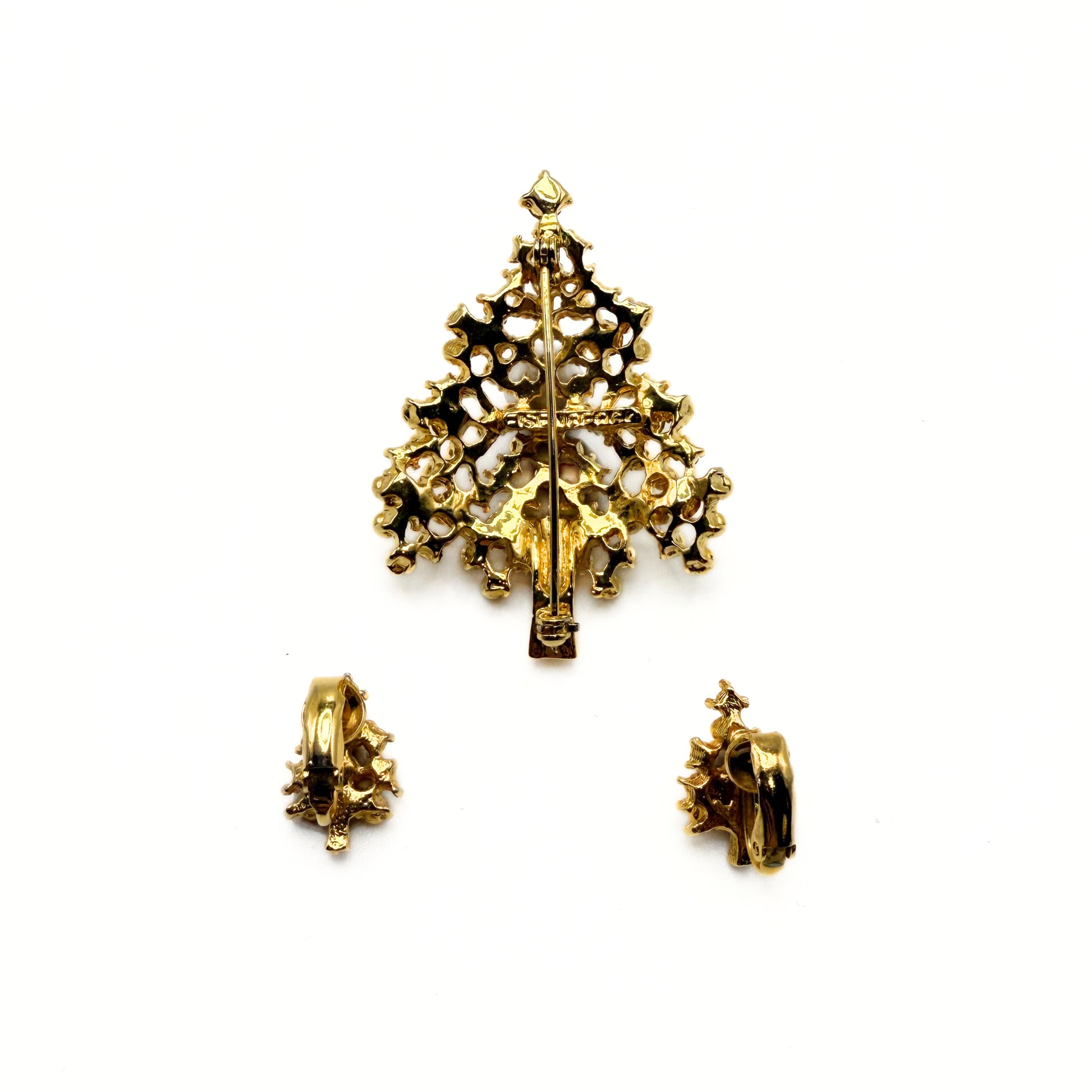 Vintage Eisenberg Ice Christmas Tree Brooch & Earrings Set