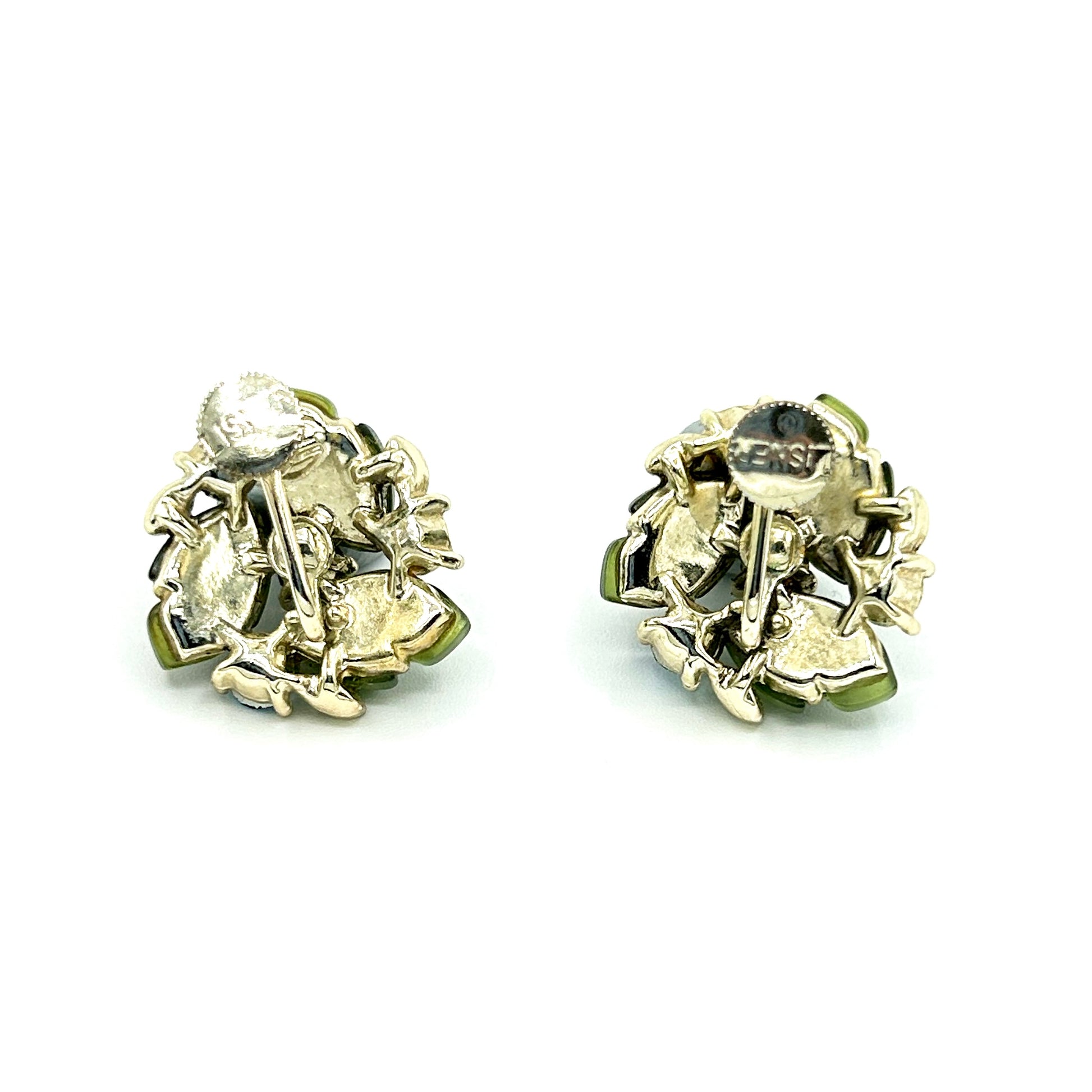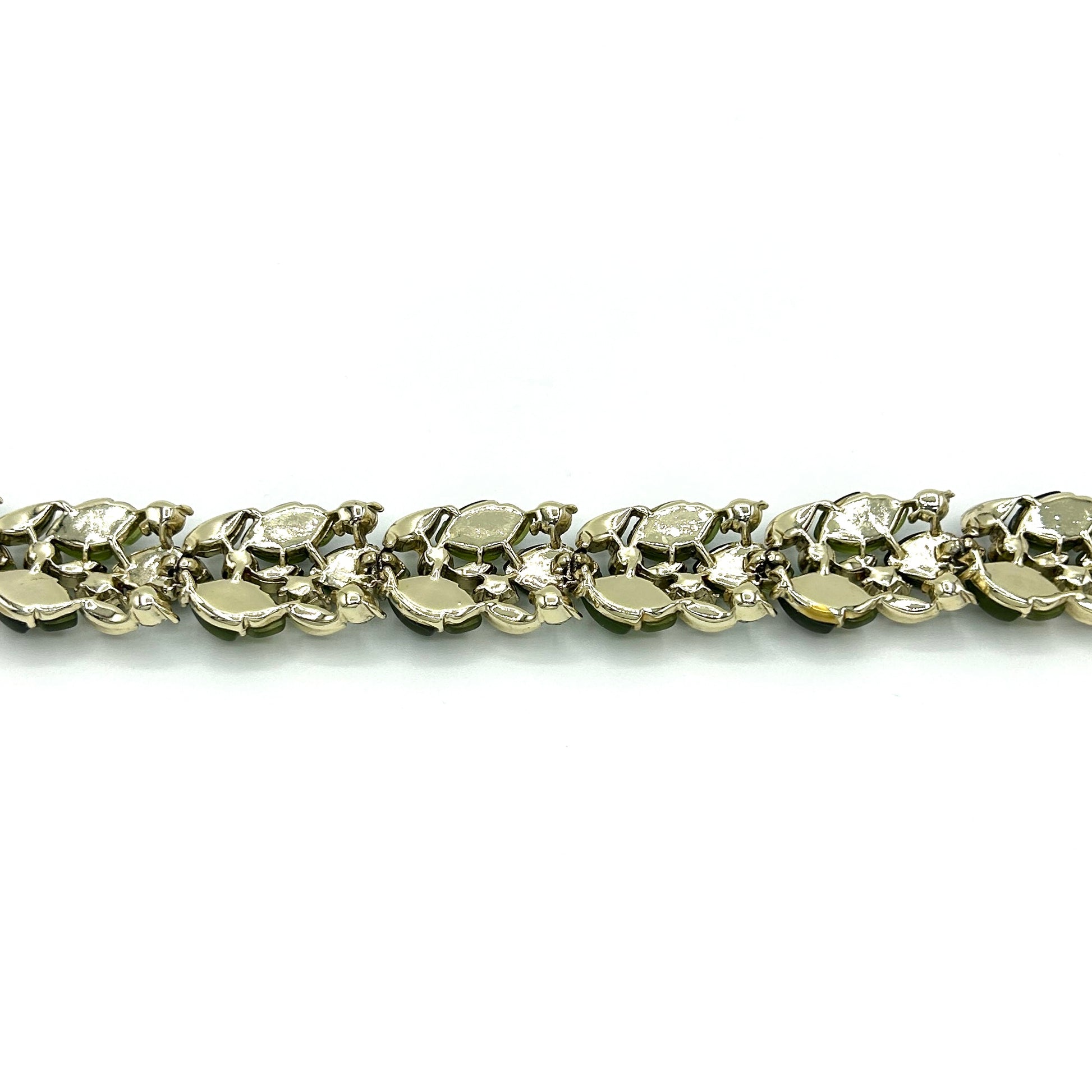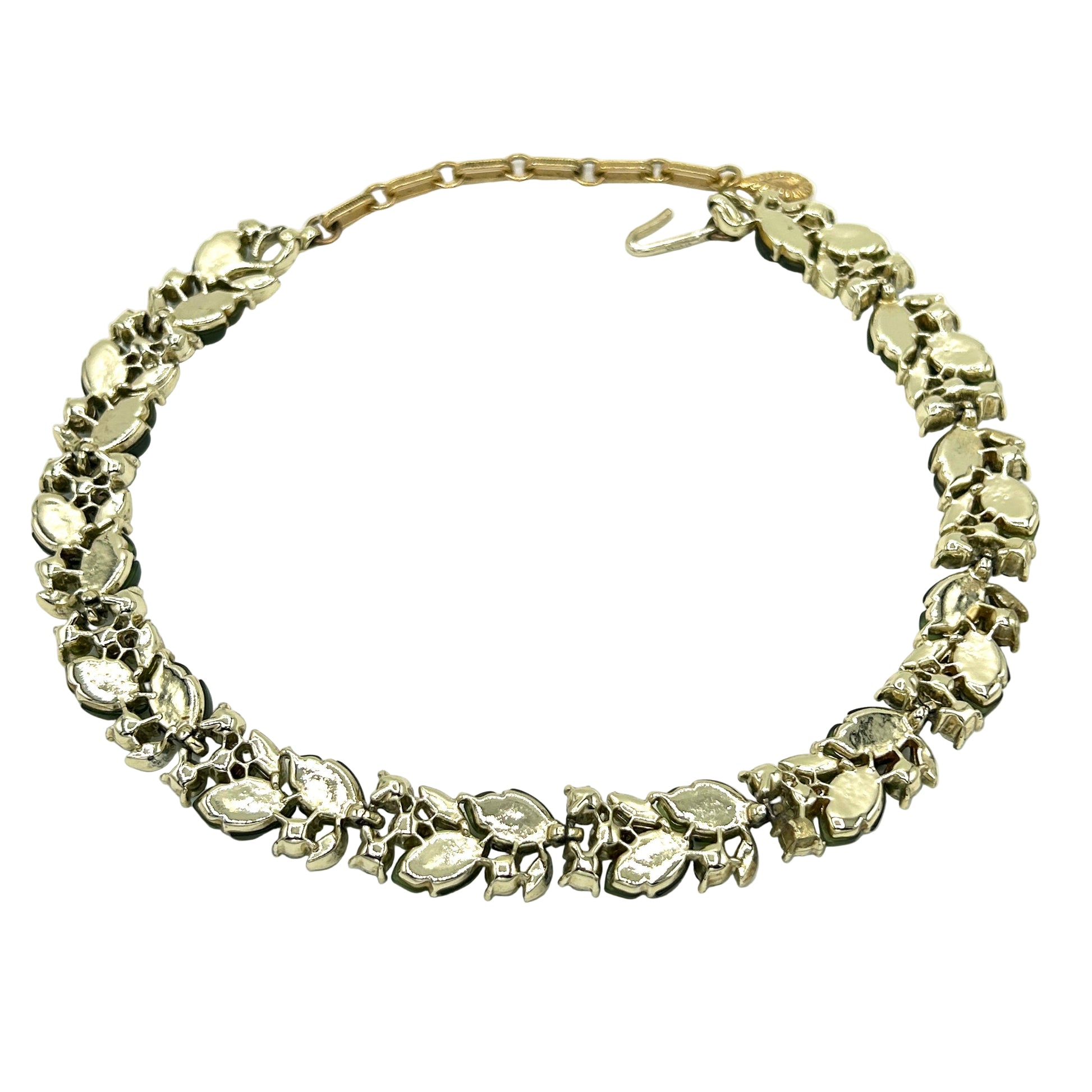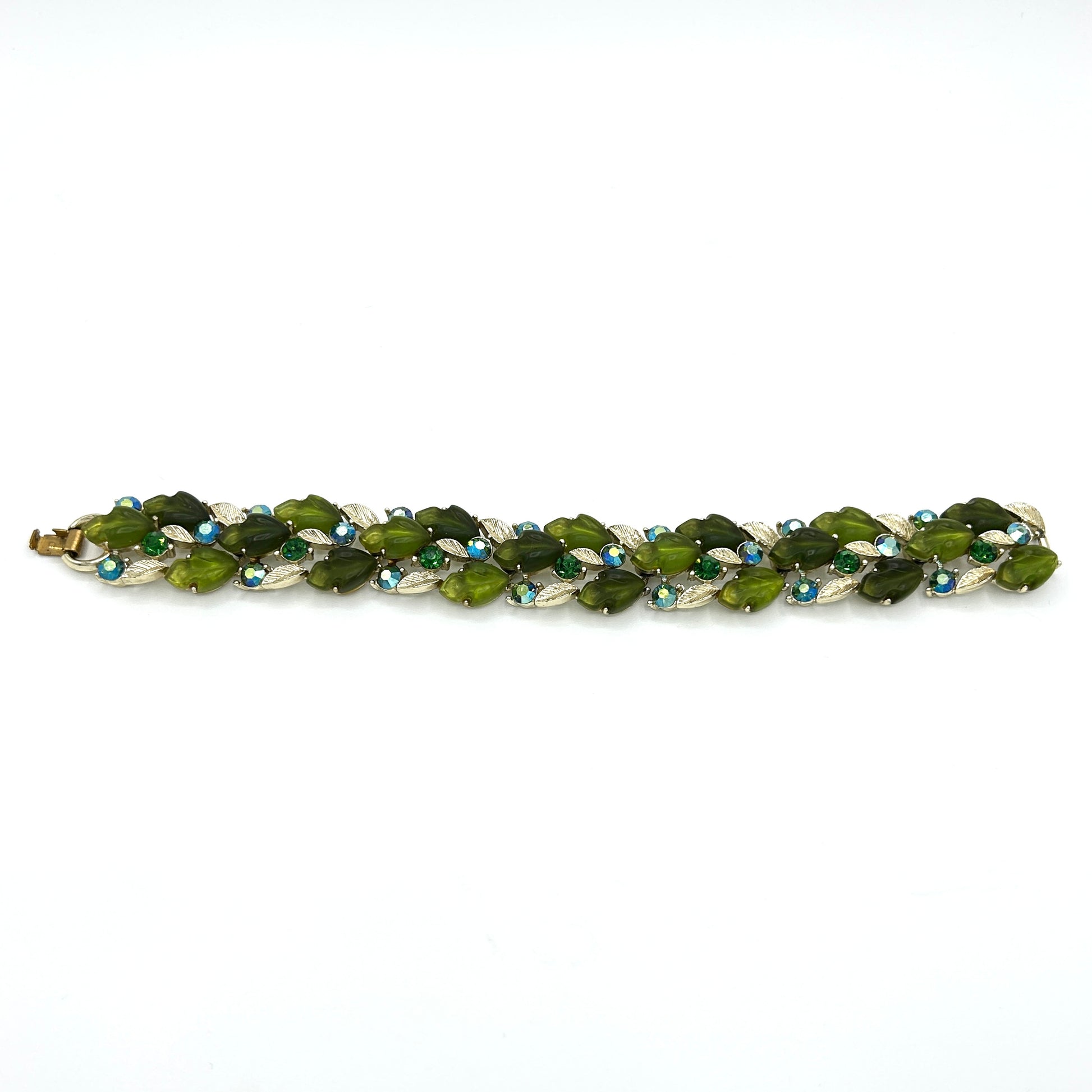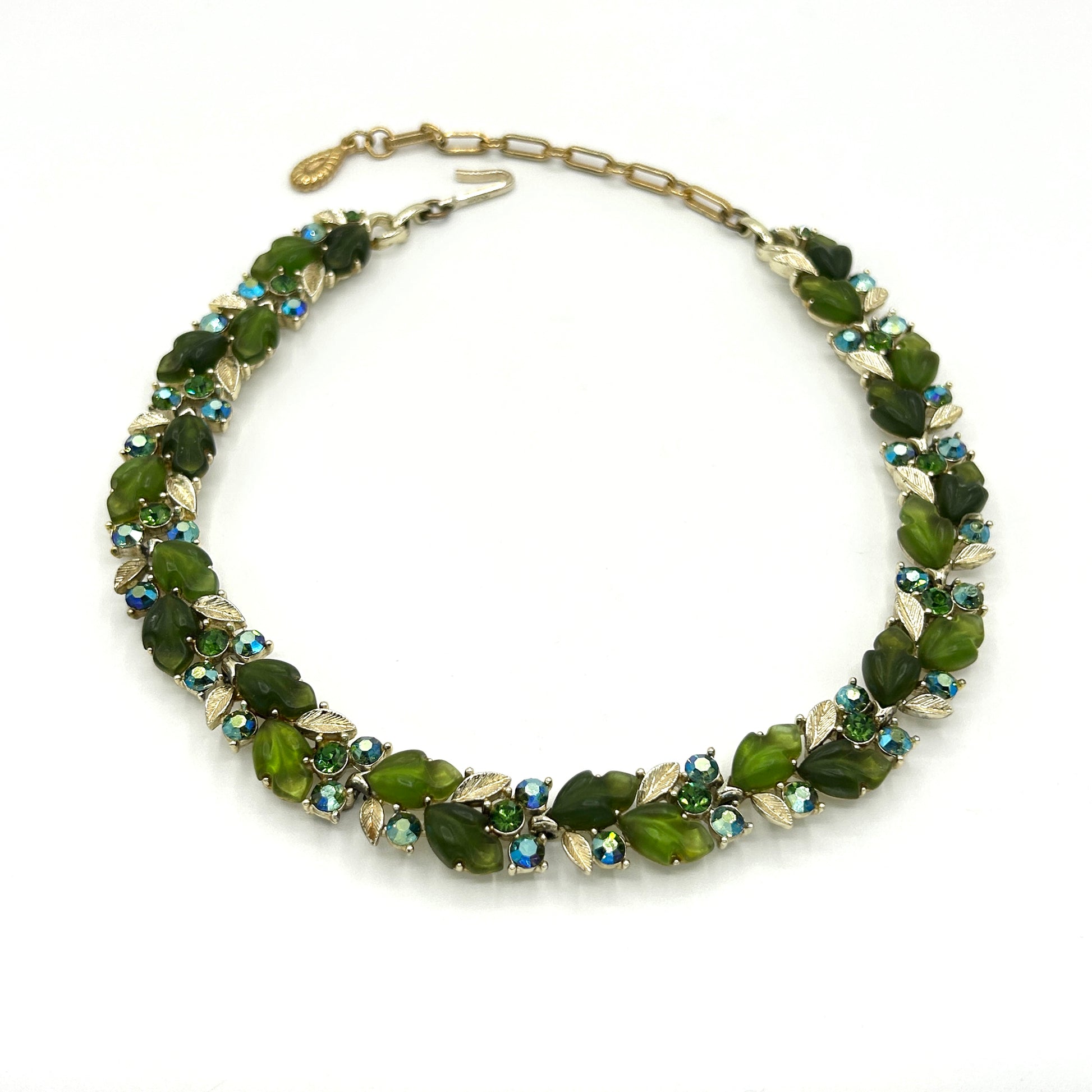 Vintage Lisner Green Leaf and Rhinestones Full Parure
