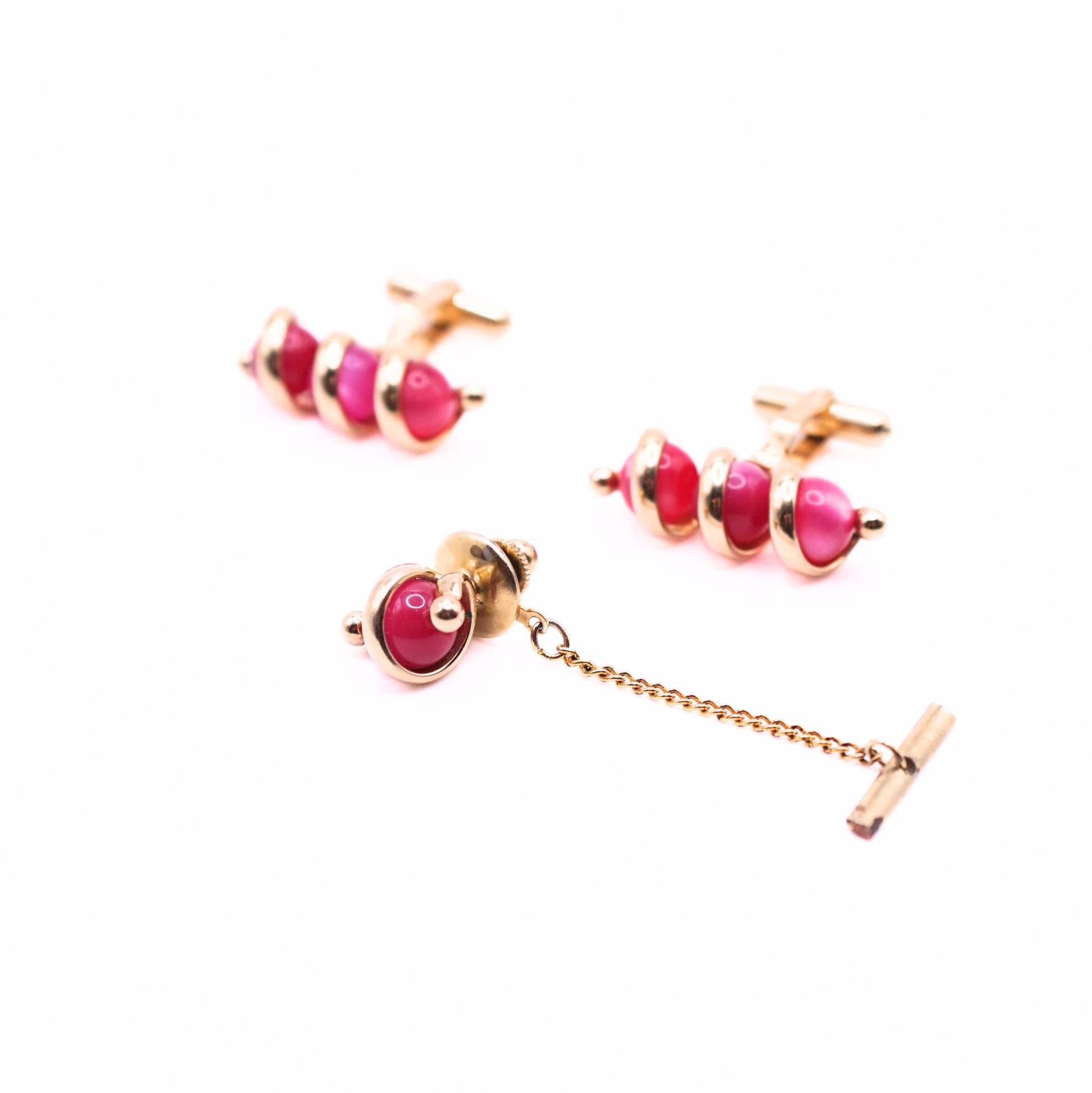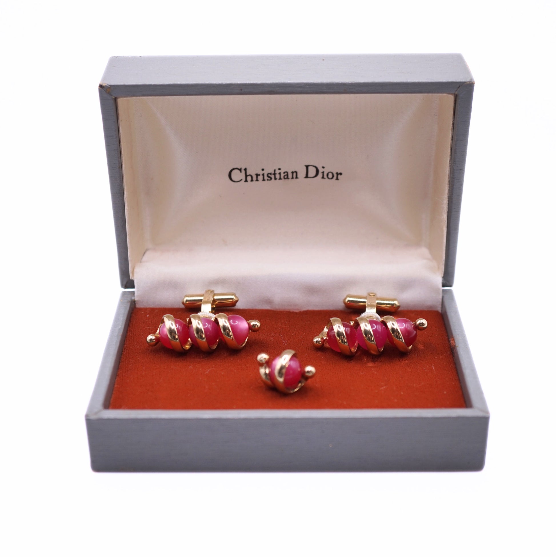 Vintage Christian Dior Red Enamel Cufflinks & Tie Tack