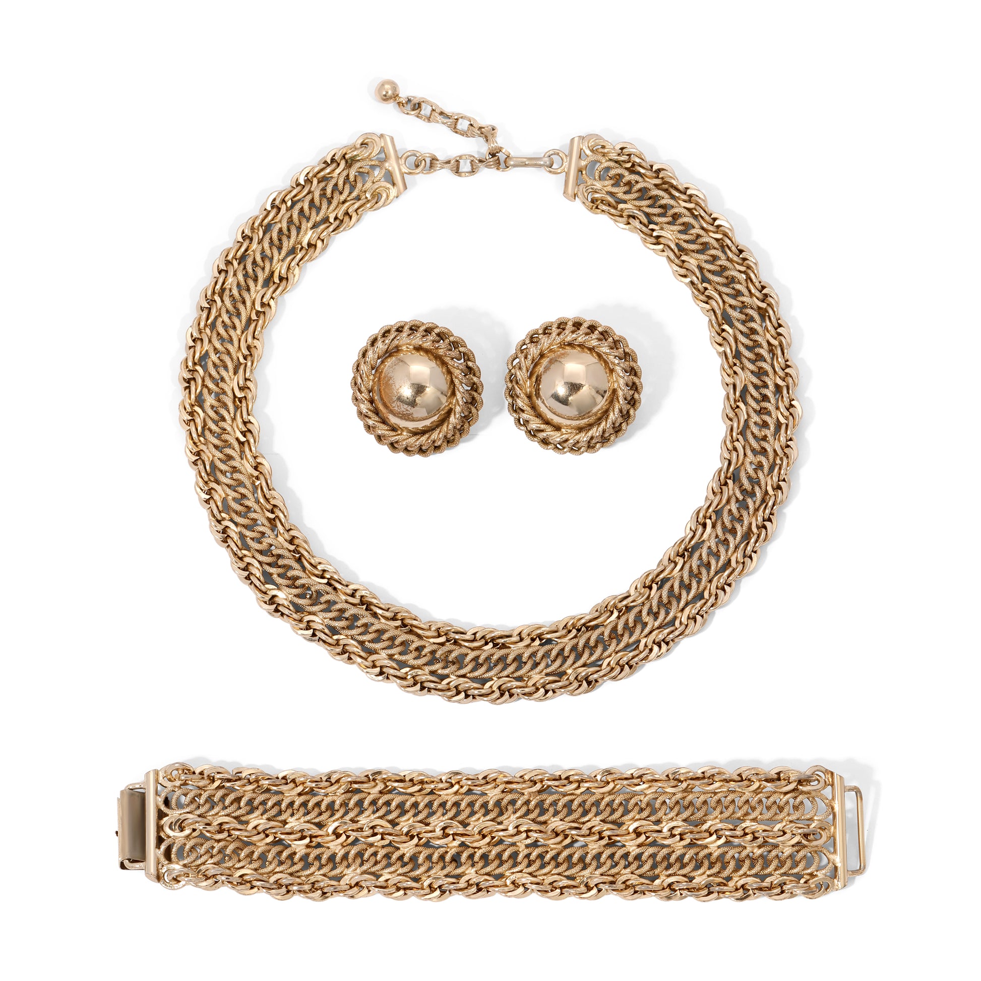 Vintage Signed Bergere Chunky Gold Toned Chain Parure