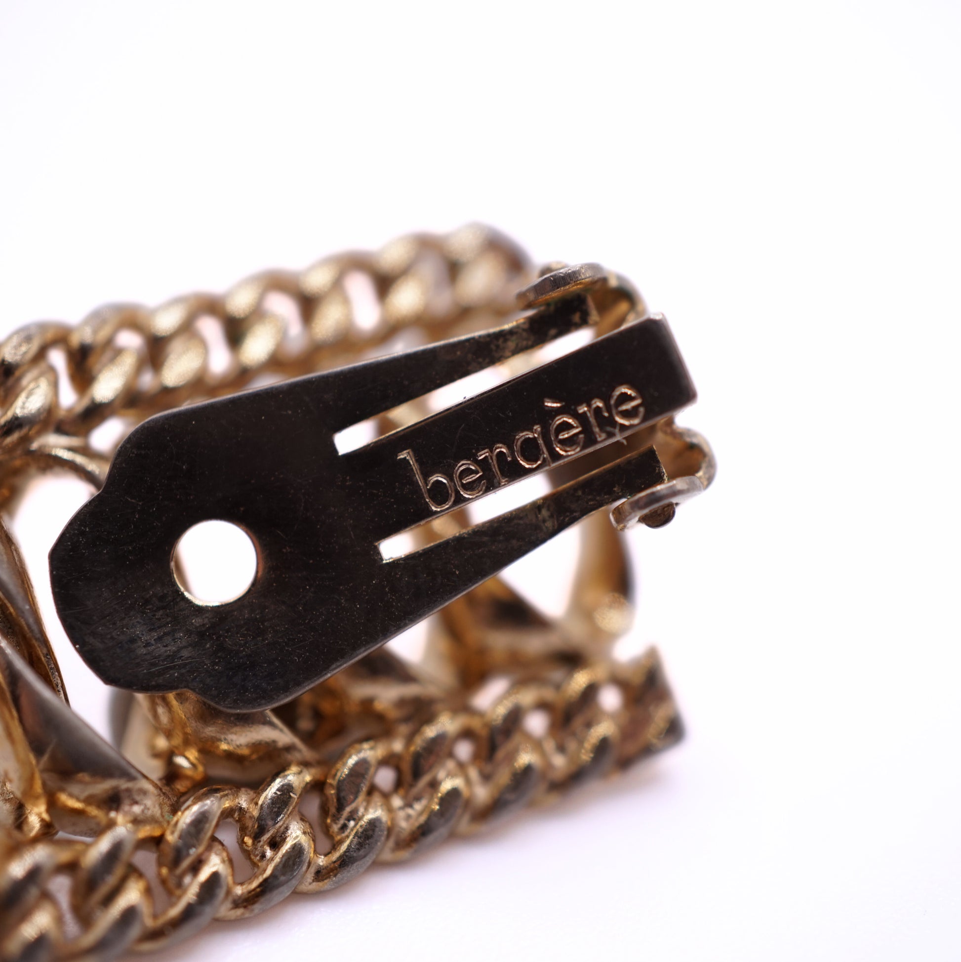 Beautiful Gold Vintage Bergere Set includes Matching Necklace, Bracelet and Clip-on Earrings. Earrings and Bracelet signed Bergere.