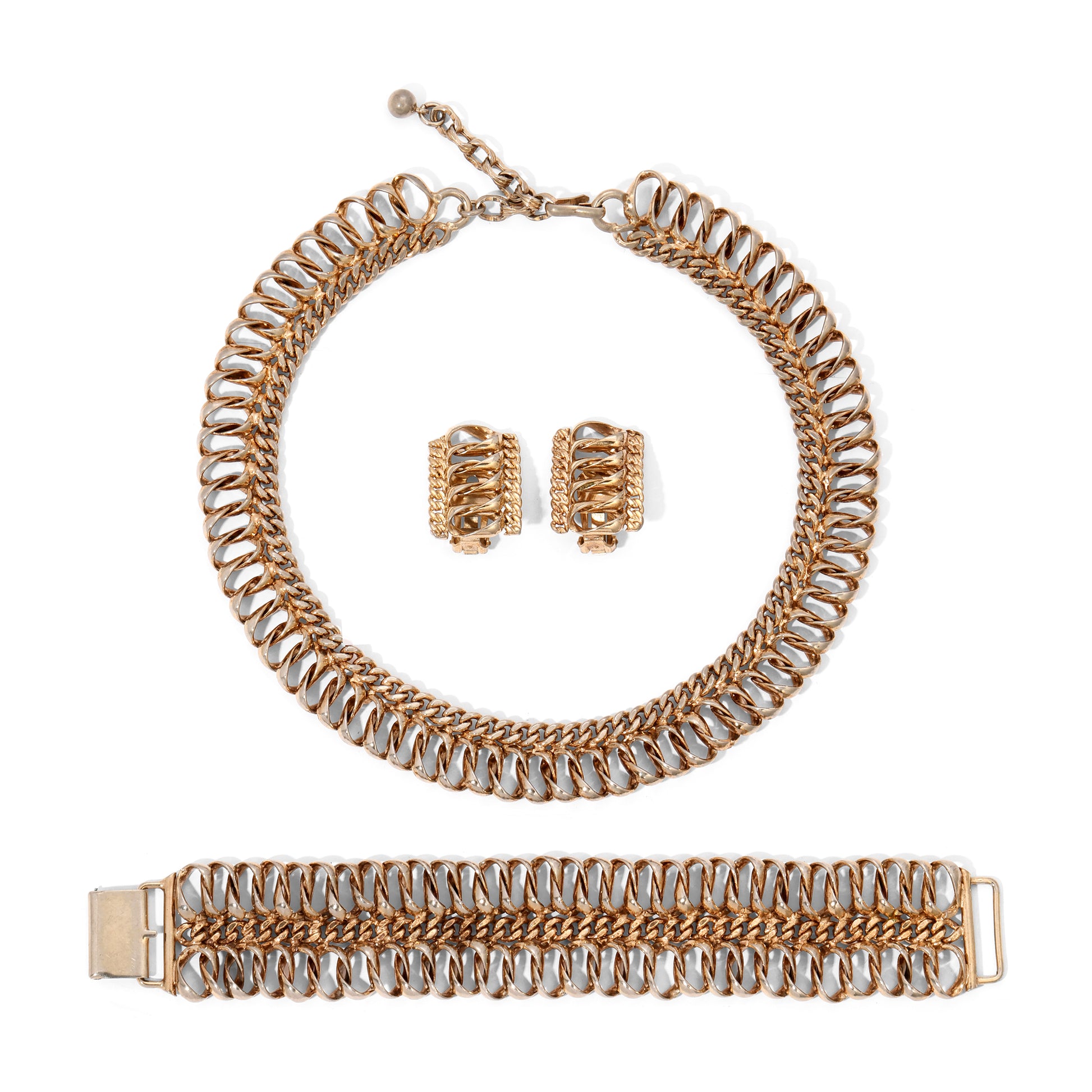 Vintage Signed Bergere Gold Toned Chain Parure