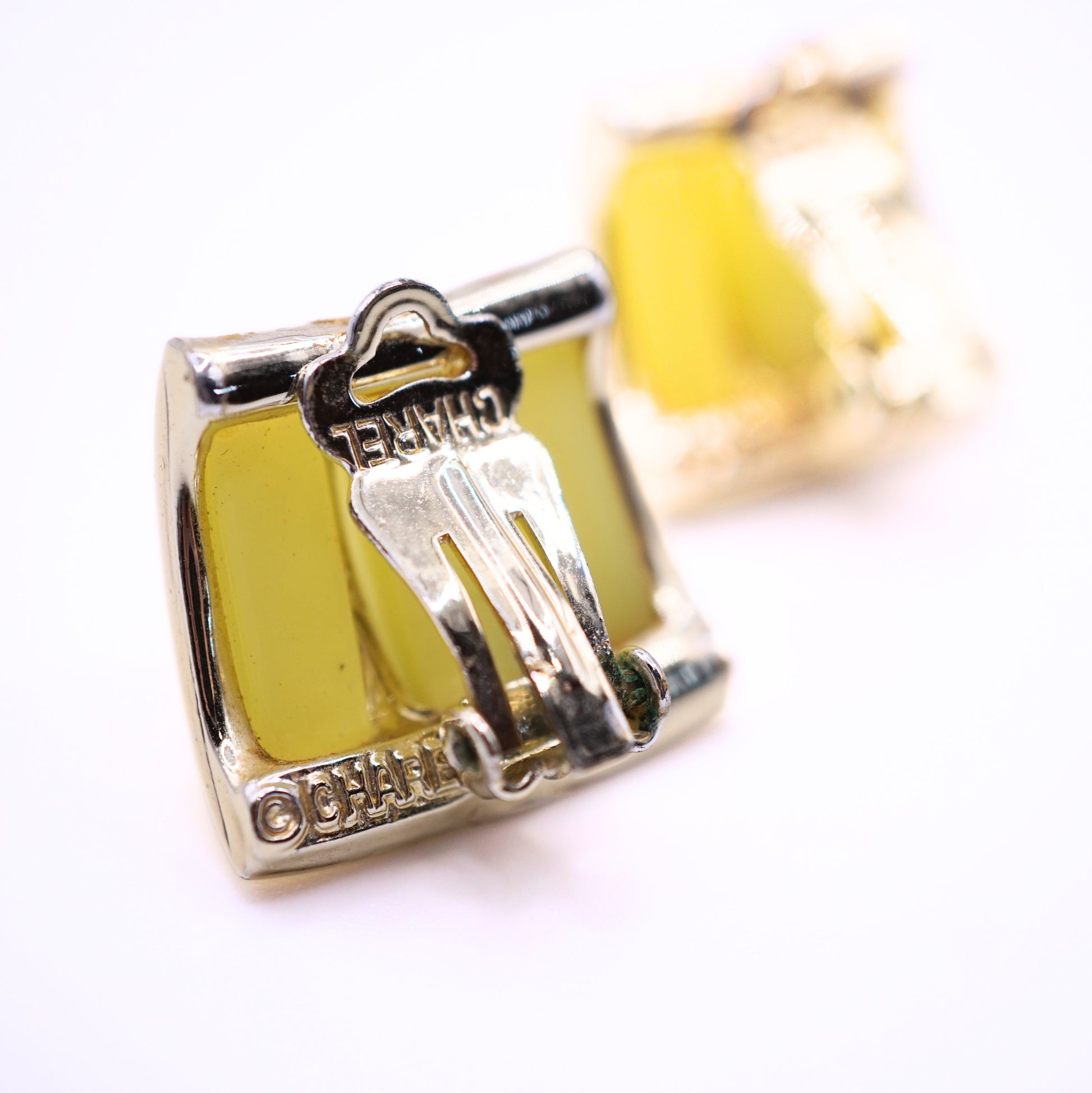 Vintage Signed Charel Chartreuse Lucite Gold Metal Parure