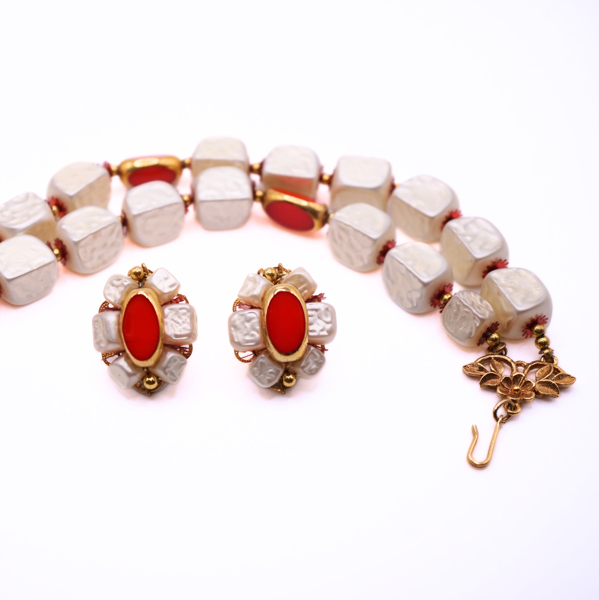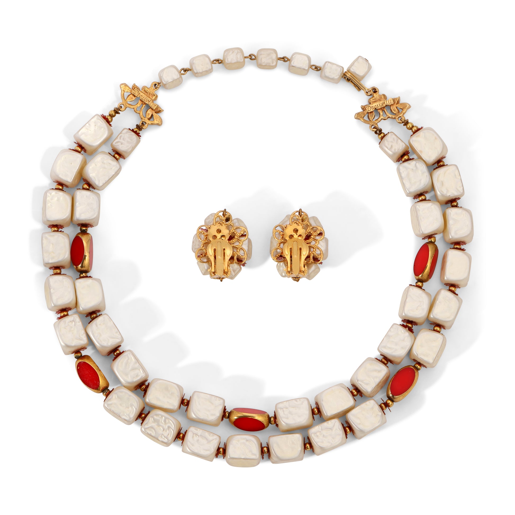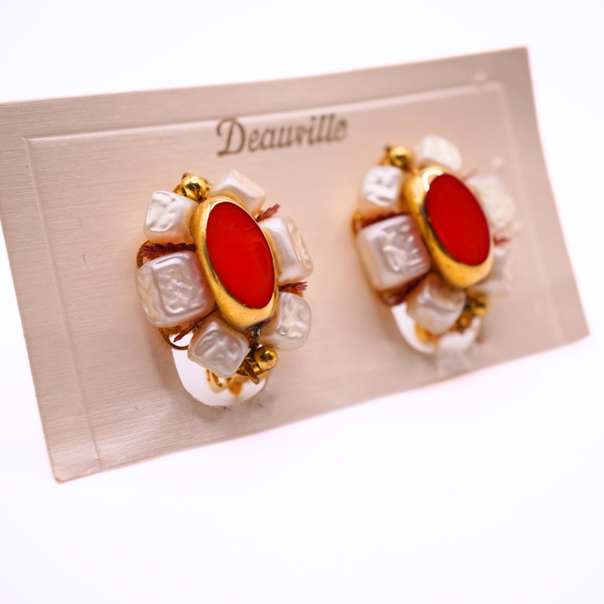 Beautiful Vintage Deauville Set includes Faux Pearl Double-Strand Choker Necklace and Clip on Earrings. Necklace signed Deauville, Earrings come with Original Deauville Packaging.