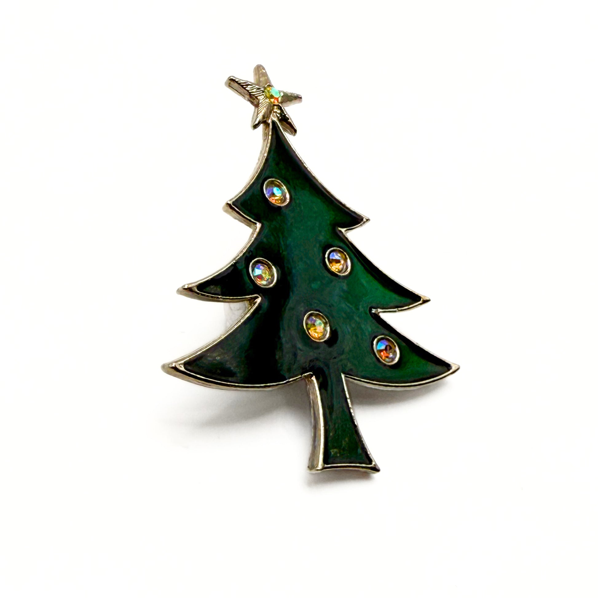 Vintage Tancer II Green Enamel Christmas Tree Brooch