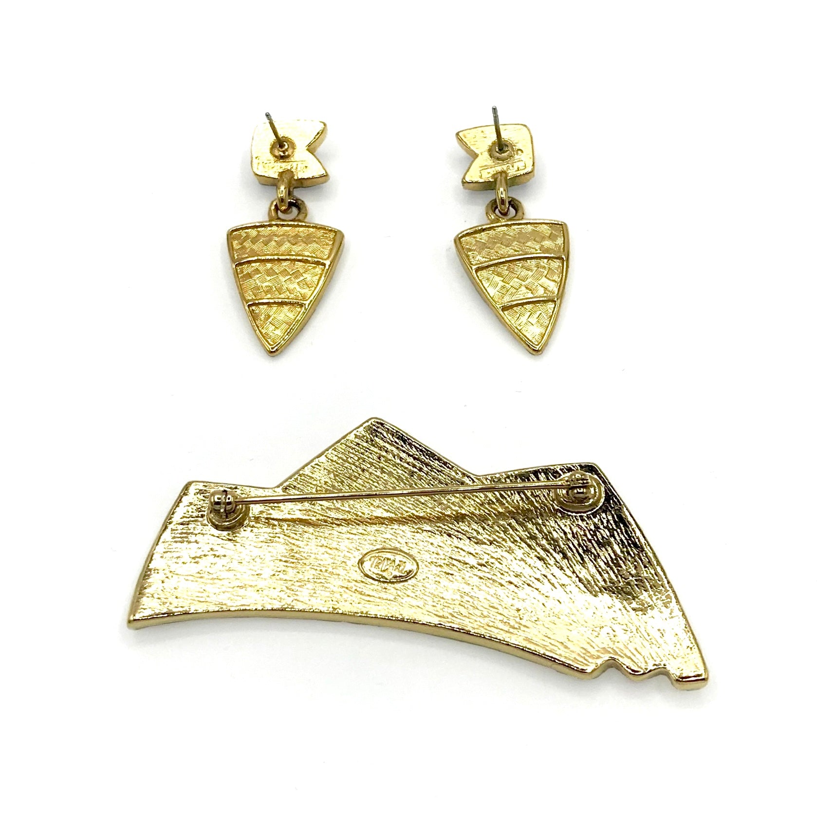 Beautiful signed TRIFARI vintage brooch and earrings.
